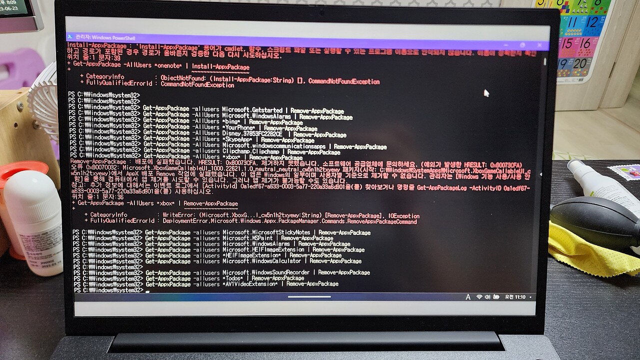 게임을 위한 윈도우는 불필요한 앱들이 너무 많기에 UWP 앱들 이것저것 다 지워줍니다.